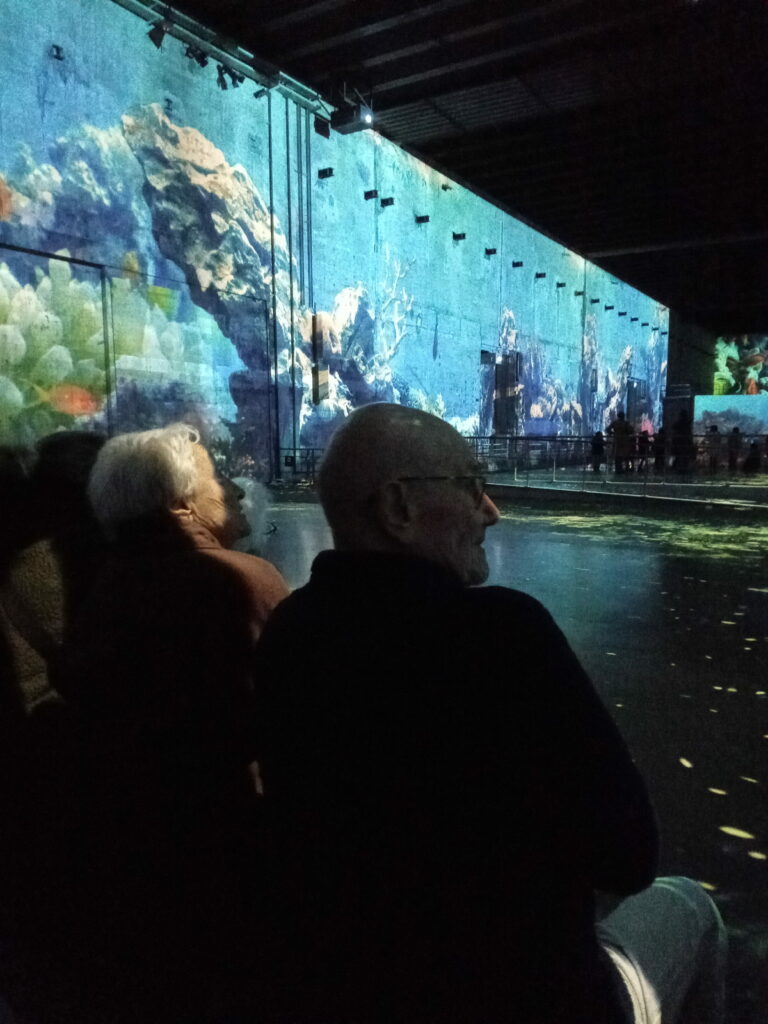 Au Bassin des Lumières, les résidents embarquent pour une exploration poétique des profondeurs marines. Les œuvres monumentales transforment l’espace en une véritable symphonie bleutée. L’art et l’océan ne font plus qu’un. Les reflets sur l’eau amplifient les émotions. Les images rythment la visite et éveillent les souvenirs. Les résidents échangent spontanément leurs impressions. Ils partagent leurs ressentis. Ils vivent ensemble une expérience collective riche de sens.